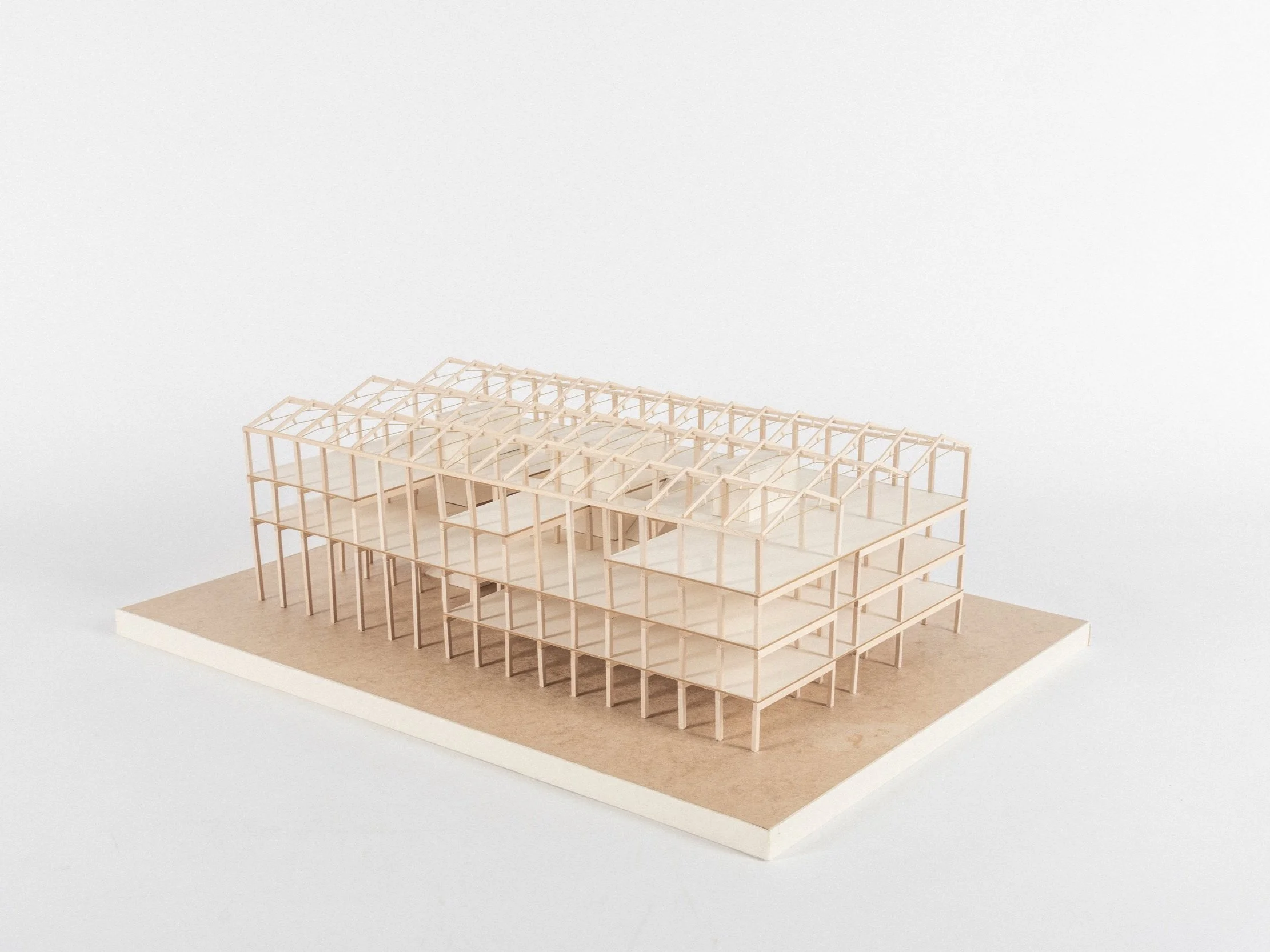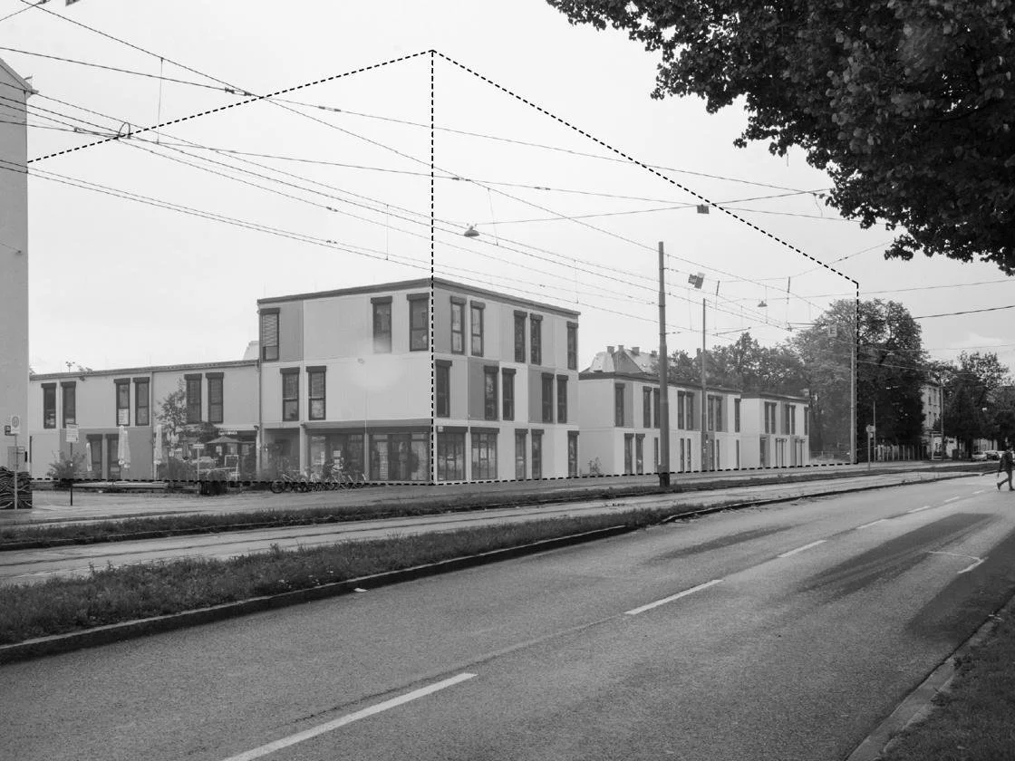 The Munich Design Institute project aimed to develop a building within the existing gap in the urban fabric of the Schwabing-West district in Munich, at the intersection of Dachauer Straße and Schwere-Reiter-Straße. This area, known as „Kreativquartier,“ is part of an urban initiative integrating residential and workspaces with art, culture, and knowledge. With a clearly defined functional program set by the university department, we designed a building that aligns with the core values of the district.